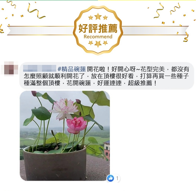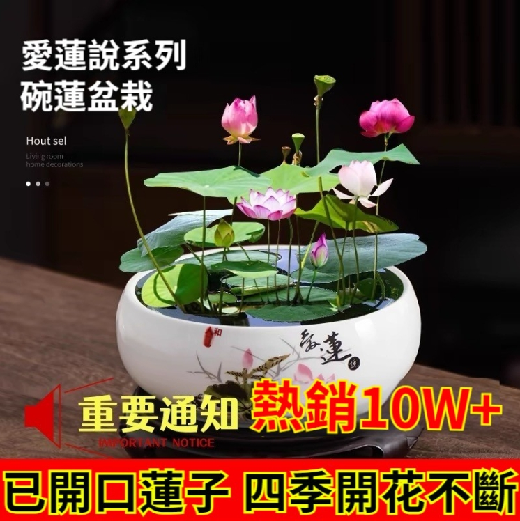 4分鐘前『招財轉運』水培碗蓮 - ★★★店主推薦【50粒+碗蓮專用營養液2+養殖盆】【綠葉+莊根+促芽+催花】,開爆了!僅需NT$1088